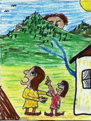 The Weepeep parents would glance about nervously, fearing the giant might have overheard. Then they would answer sadly that the great mountain belonged to the ferocious giant Sloggrr and his cohort of giant mountain henchmen. Weepeeps were strictly forbidden to go near the great mountain. To climb the great mountain, even to ask about it, would surely incur the wrath of Sloggrr.